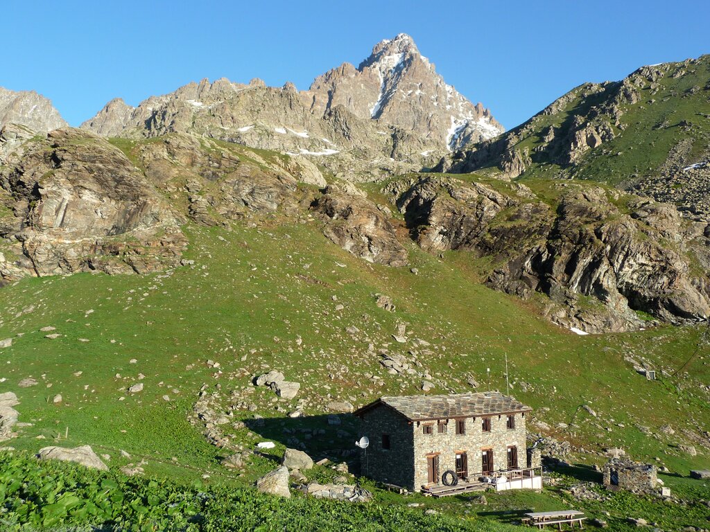 Nei pressi del lago dell'Alpetto, il moderno rifugio sorge vicino alla prima struttura ricettiva realizzata dal Cai come appoggio per la salita al Monviso.